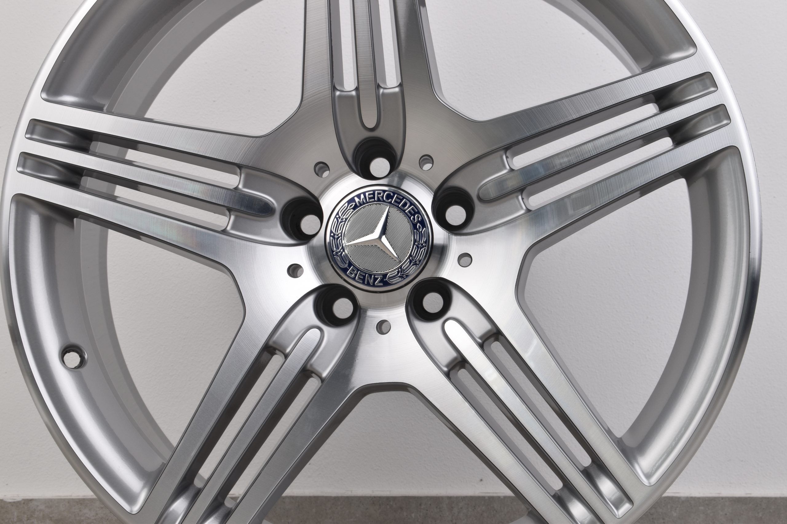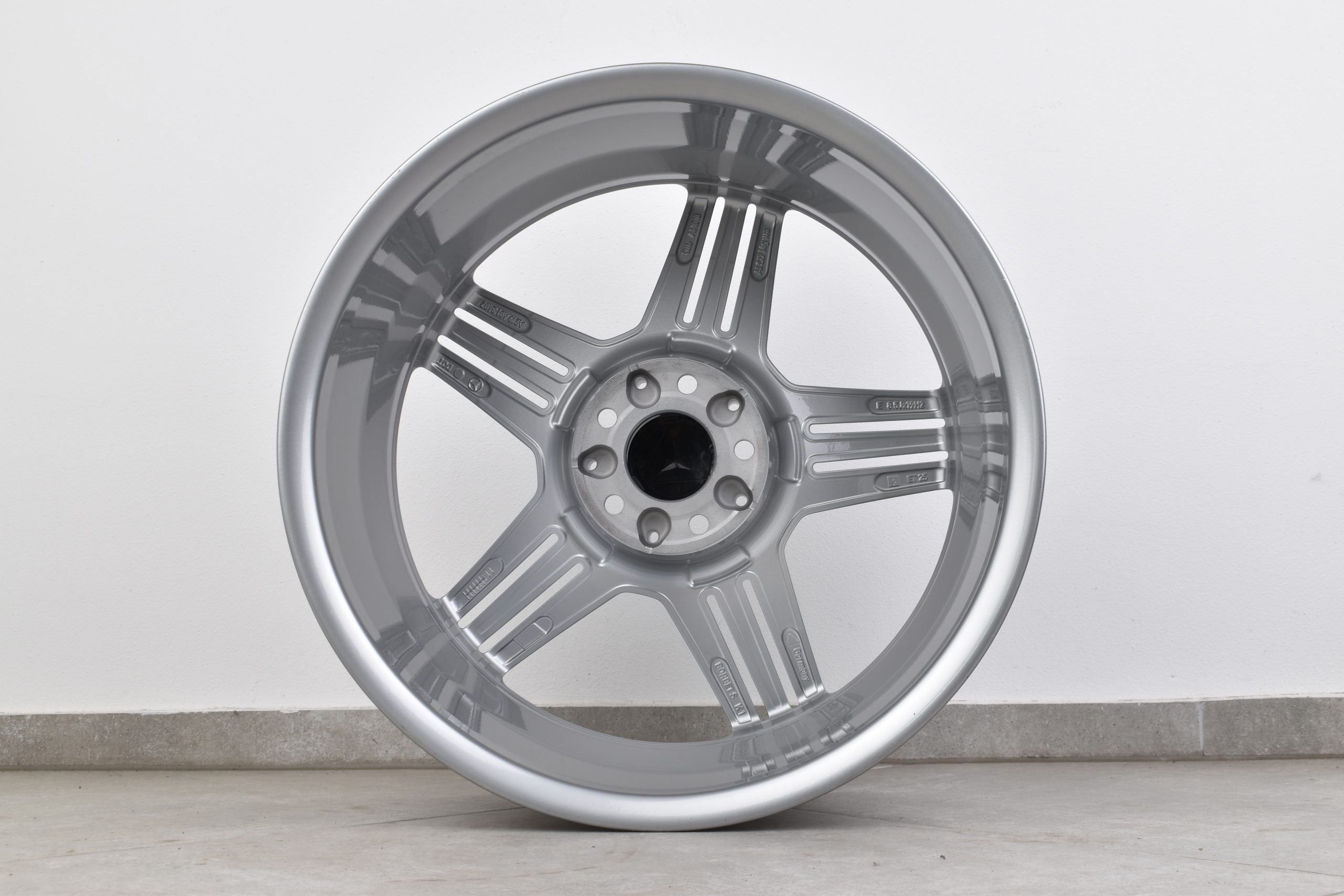 Der Radsatz präsentiert sich makellos und wurde professionell aufbereitet. Die industrielle Pulverbeschichtung in Verbindung mit der CNC-Bearbeitung (Diamond Cut) garantiert ein Finish auf OEM-Niveau, das deutlich hochwertiger und beständiger ist als eine einfache Lackierung. Jede Felge wurde akribisch auf ihren technischen Rundlauf geprüft, um Ihnen maximale Sicherheit und den gewohnten Mercedes-Fahrkomfort zu gewährleisten.